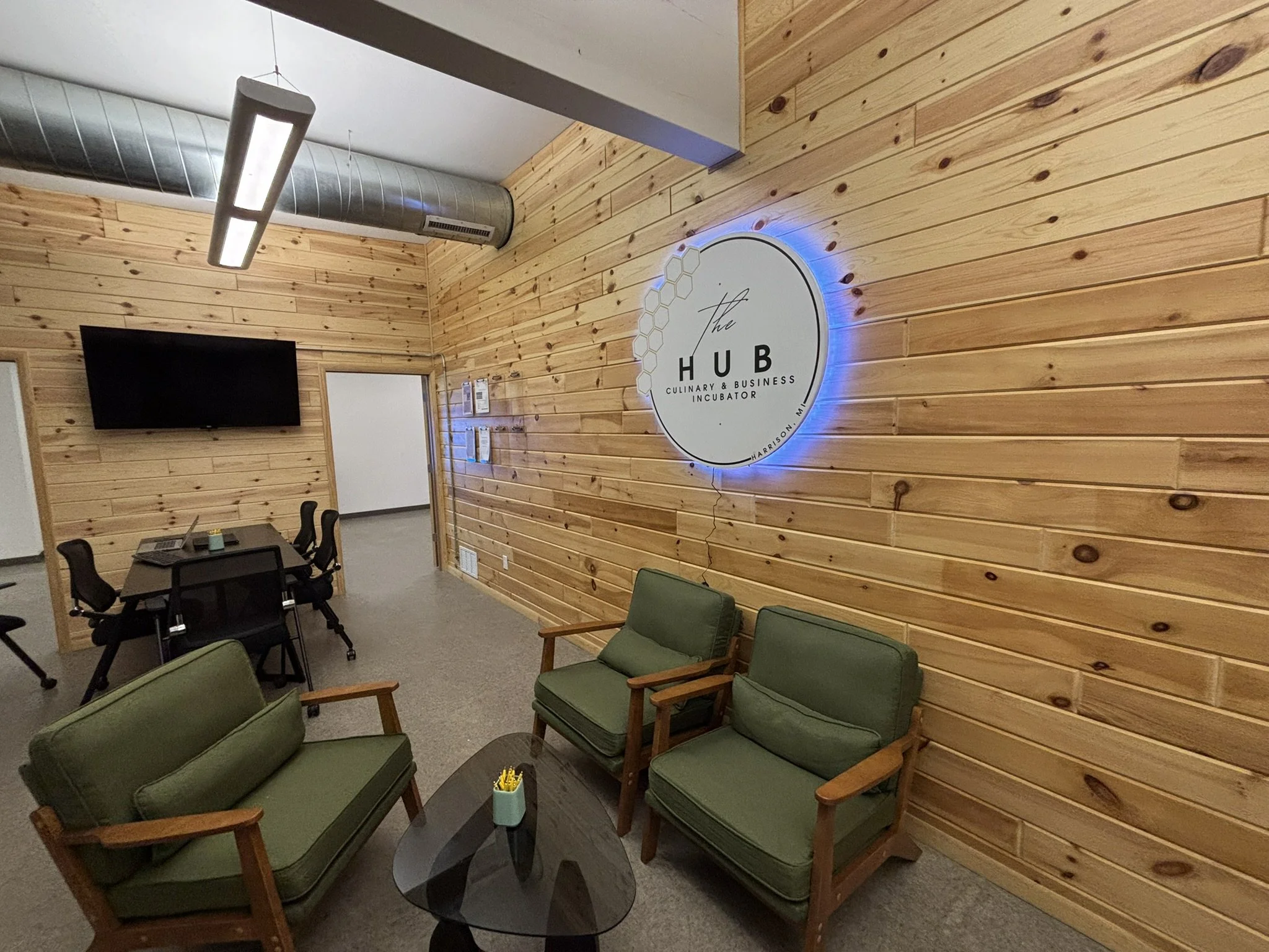 The Hub’s Coworking space is Harrison’s community business center. With 300 square feet of indoor space and seating for up to 14 people, there’s plenty of room to use for your own work or to meet and collaborate with other people and businesses.